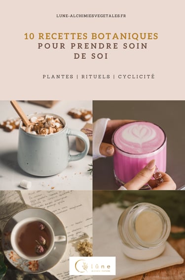 10 recettes délicieuses et simples à préparer chez toi, pour prendre soin de toi naturellement au fil de ton cycle : tisanes apaisantes, latte rose hibiscus, sirop de sureau, soins corps aux huiles essentielles et même des marshmallows avec de la racine de guimauve à la rose enrobés de chocolat noir.