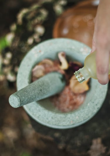 Les onctions sacrées de Lüne Alchimies Végétales allient huiles végétales nobles, huiles essentielles, élixirs floraux et intention consciente.